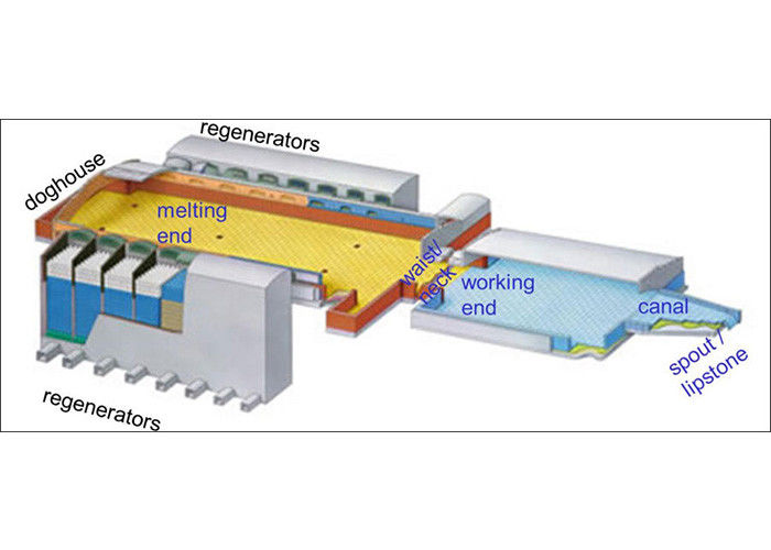 300TPD Forno regenerativo de combustão cruzada Dispositivo de fusão de vidro grande